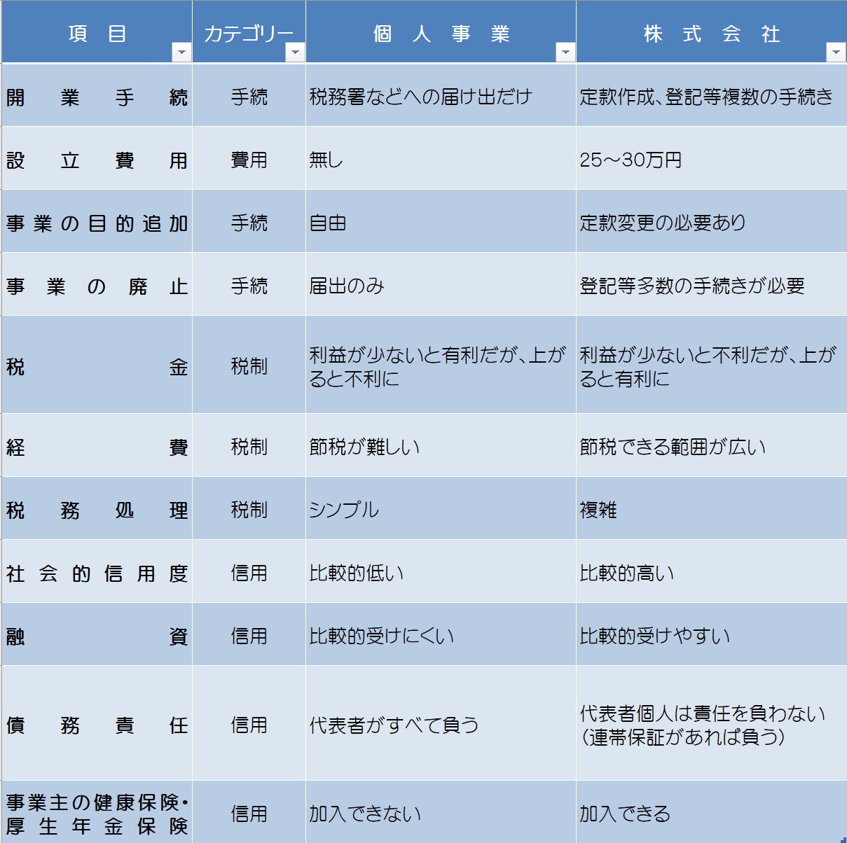 - ○ 4.信用面・債務責任面から見た『個人事業主』と『法人』のメリット・デメリット