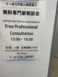 本日は(公財)札幌国際プラザ主催の無料専門家相談会の相談員業務を行なってまいりました。