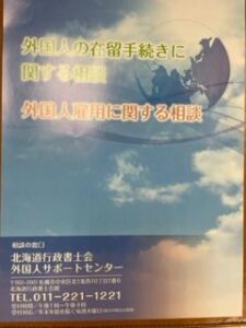7月4日付で北海道行政書士会の外国人サポートセンター委員