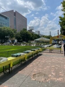 数日後に始まる恒例行事の大通ビアガーデンの開催に向けの風景です。
