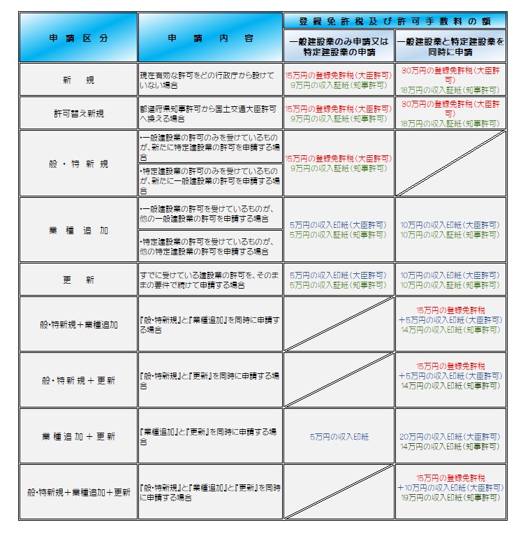 許可申請の手続き~『申請区分』と『手数料』~