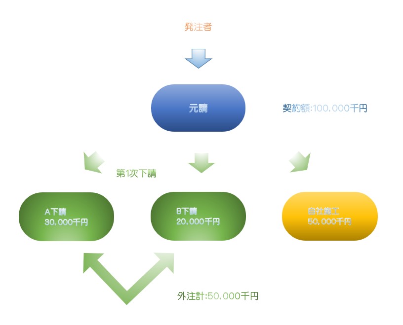 上記の場合、1件の下請会社へのへの発注金額は