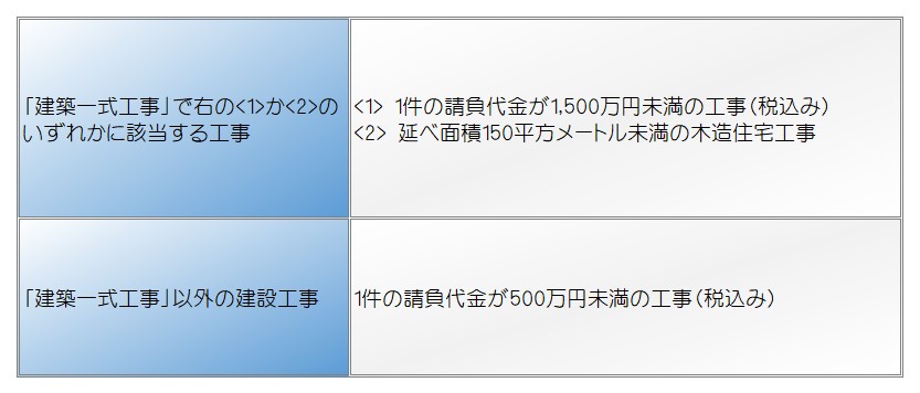 ここでいう「軽微な建設工事」とは、工事一件の請負代金の額が、