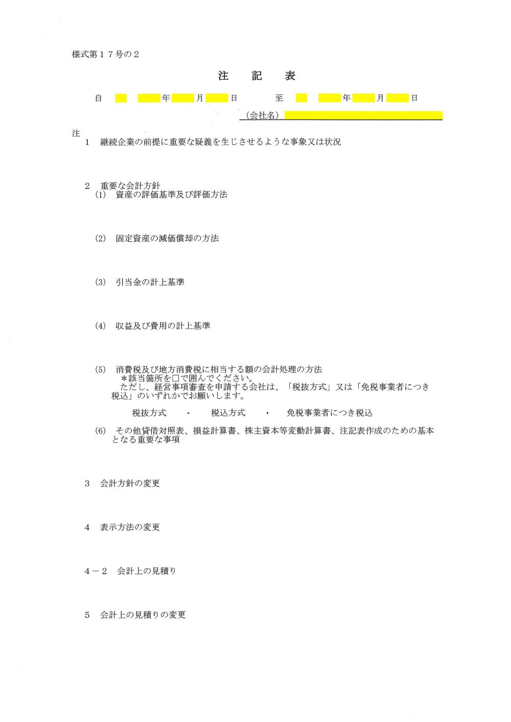 - ・様式第17号の2 注記表