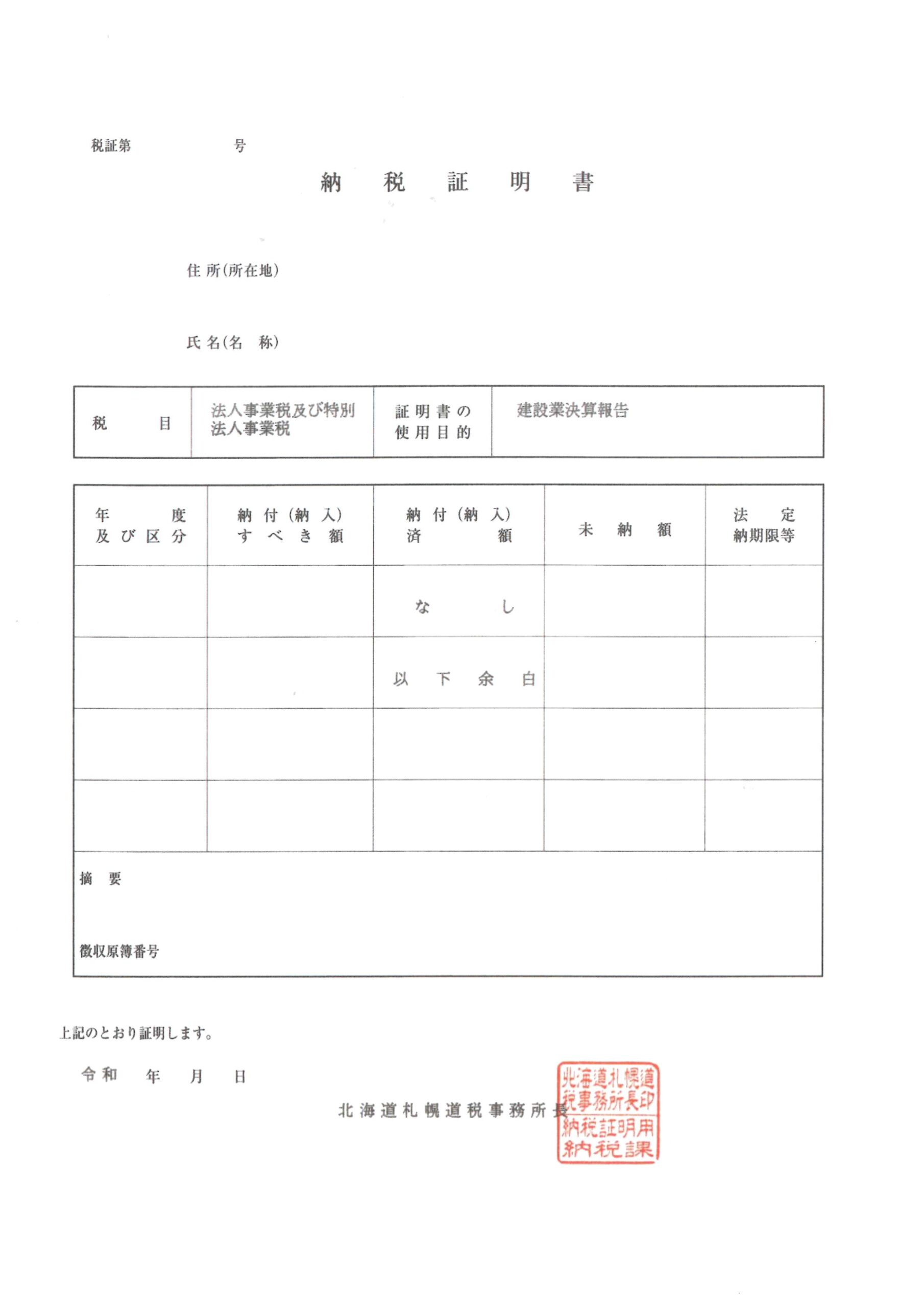 - ・道税事業税の納税証明書