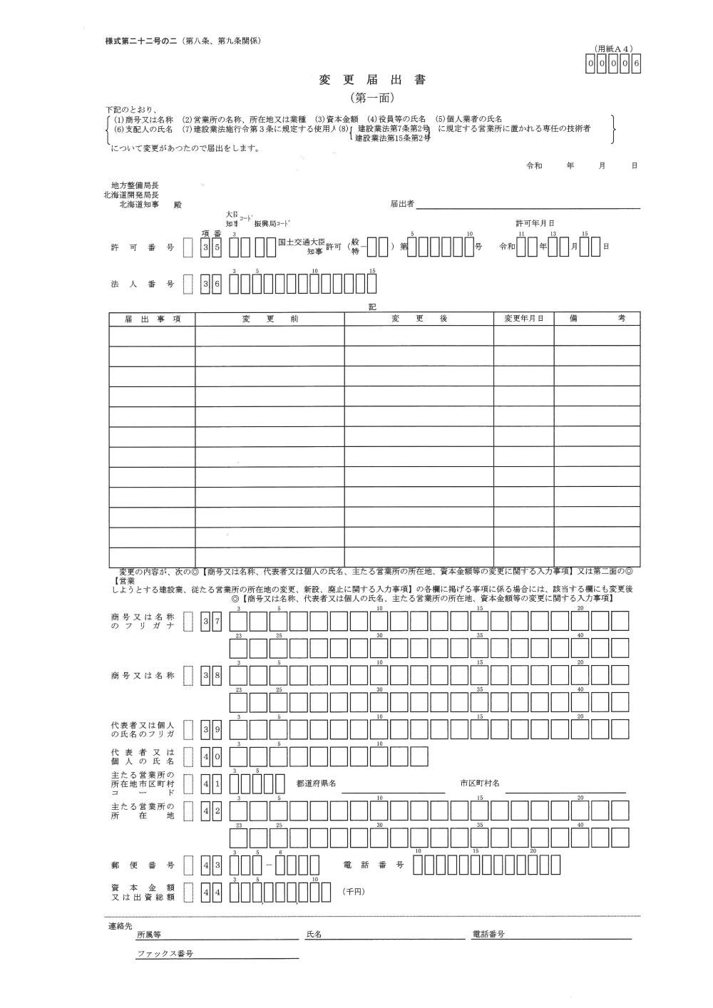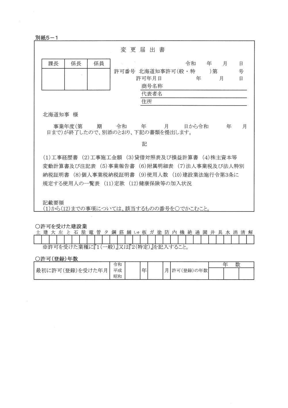 建設業許可変更届出書の申請様式はこちらから 出典:北海道電子自治体共同システムより