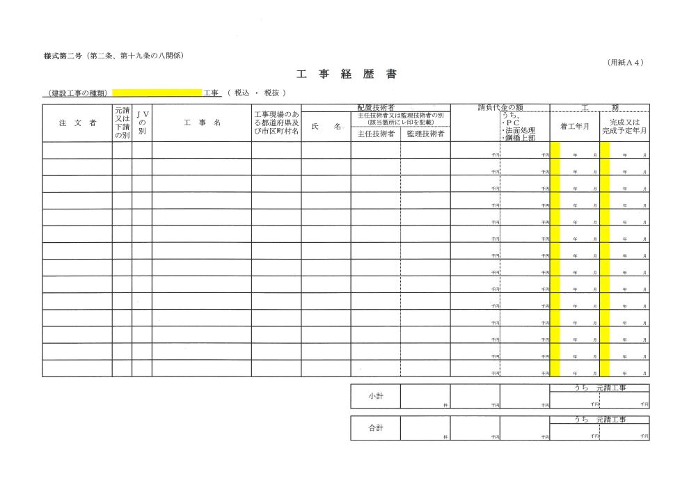 - ・様式第二号 工事経歴書