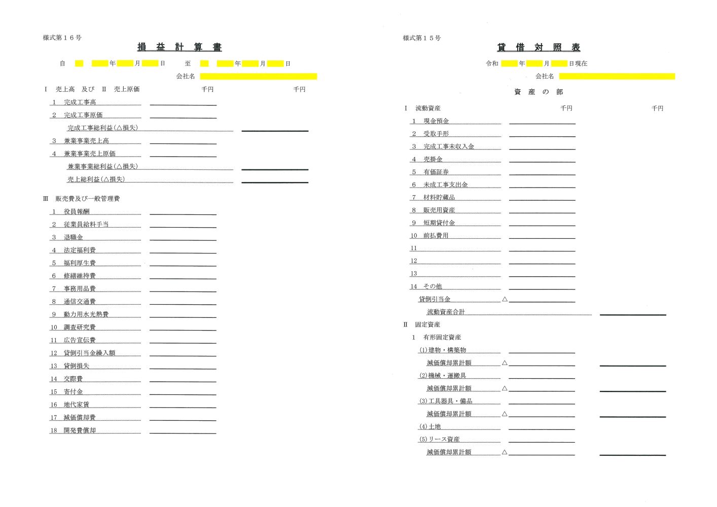 - ・様式第15号 貸借対照表、様式第16号 損益計算書