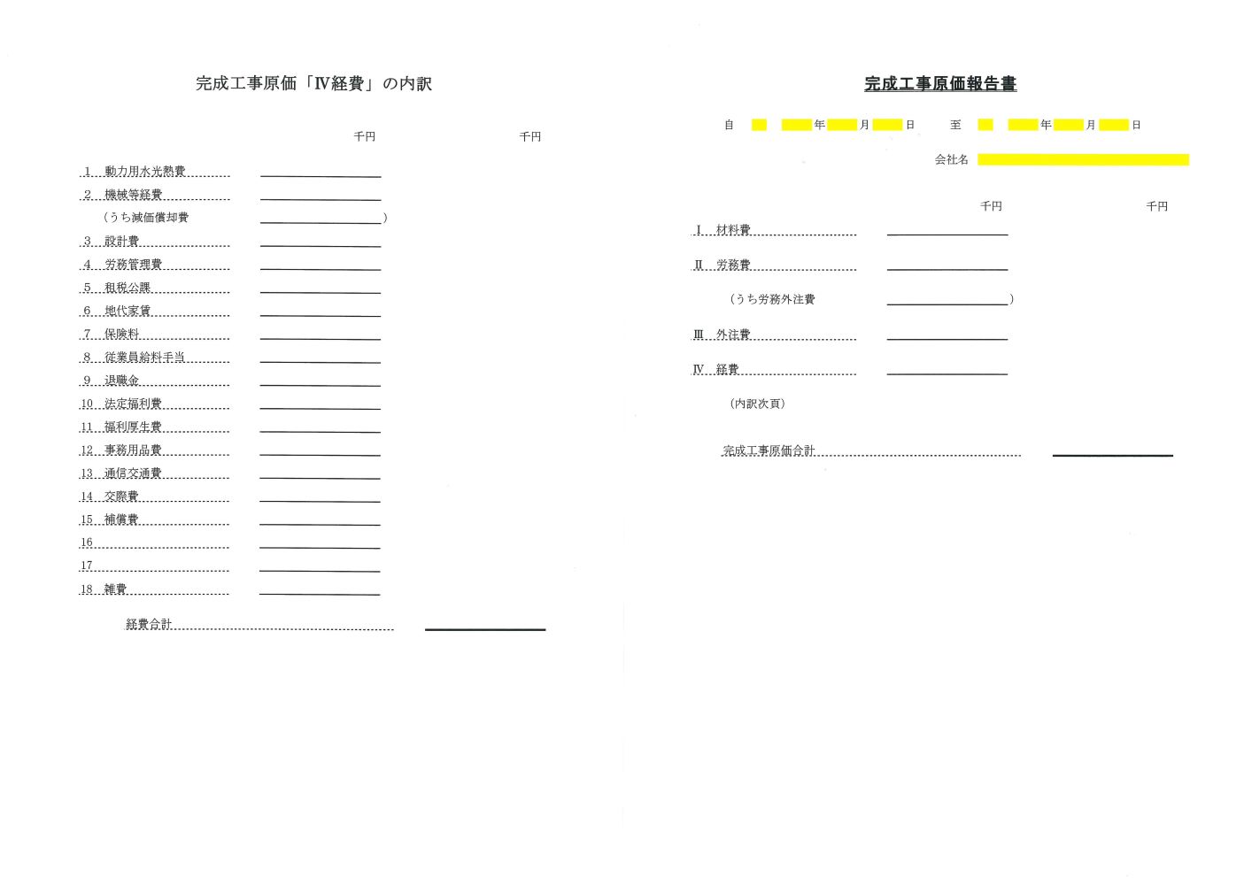 - ・完成工事原価報告書