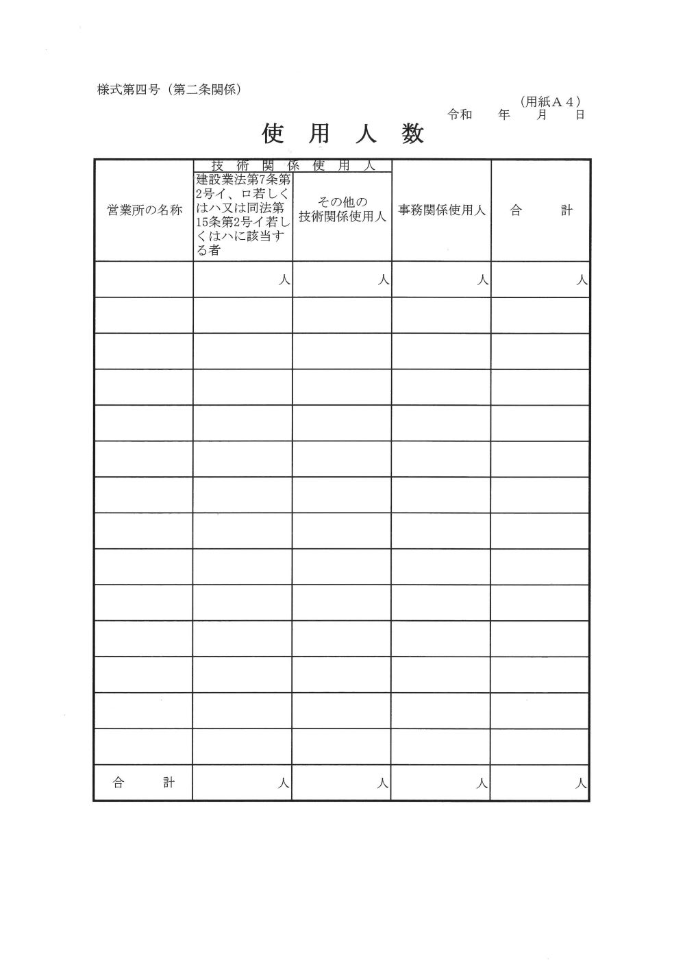 - ・様式第四号 使用人数