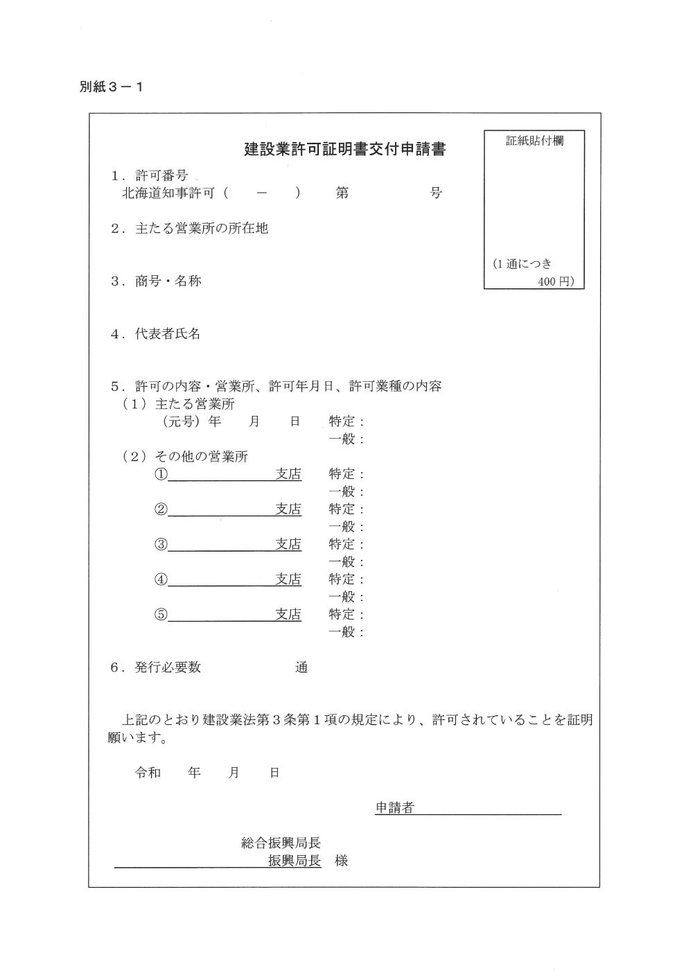 建設業許可証明書交付申請書の申請様式はこちらから 出典:北海道電子自治体共同システムより