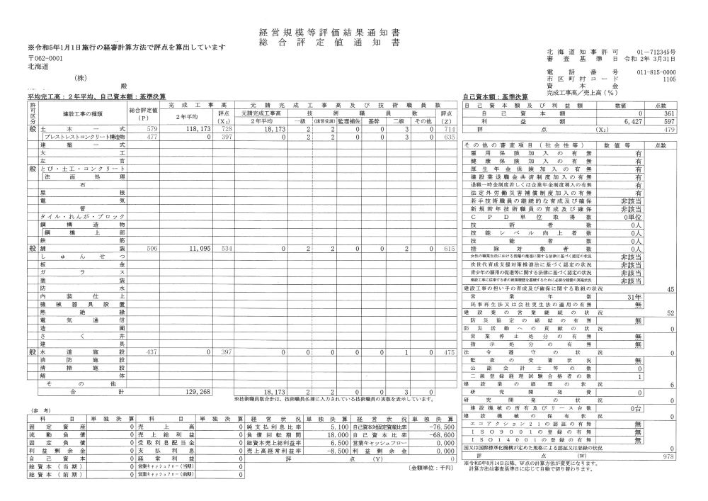 建設業経理点数(W5)