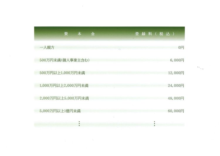 また、登録料は事業者の資本金額をもとに決まります。
