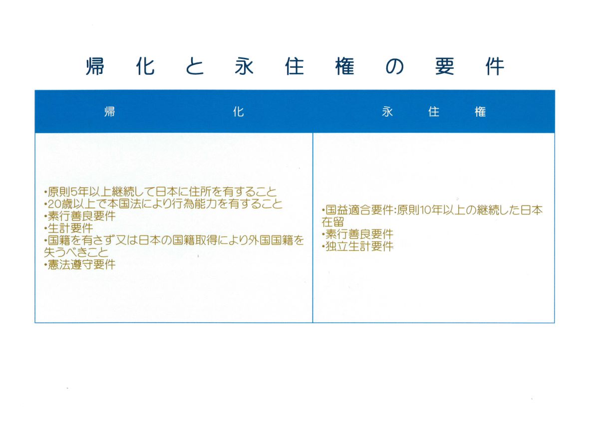 - ○ 『帰化』と『永住許可』の違いを考えてみましょう!
