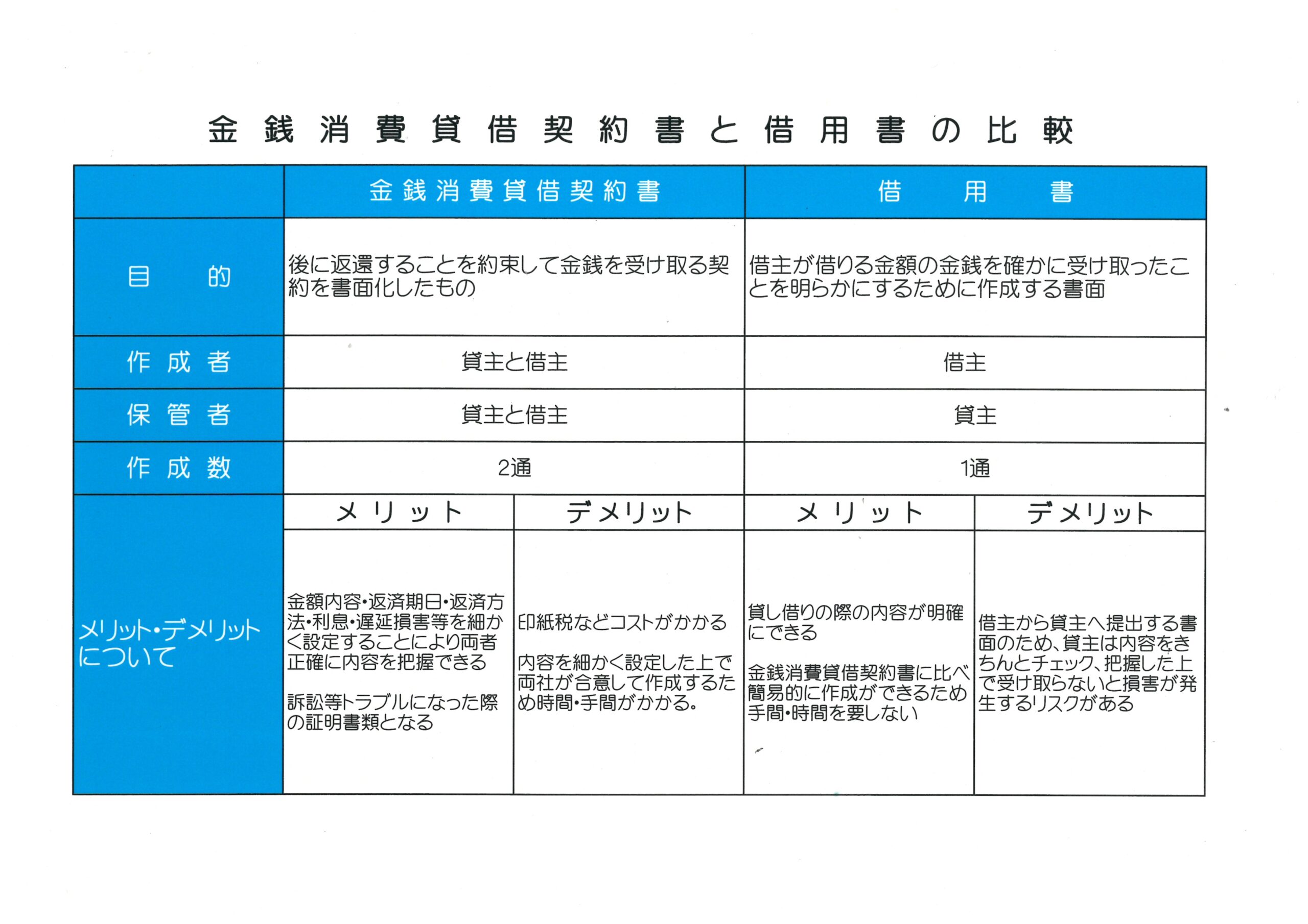 金銭消費貸借契約書と借用書の違いは何でしょう?