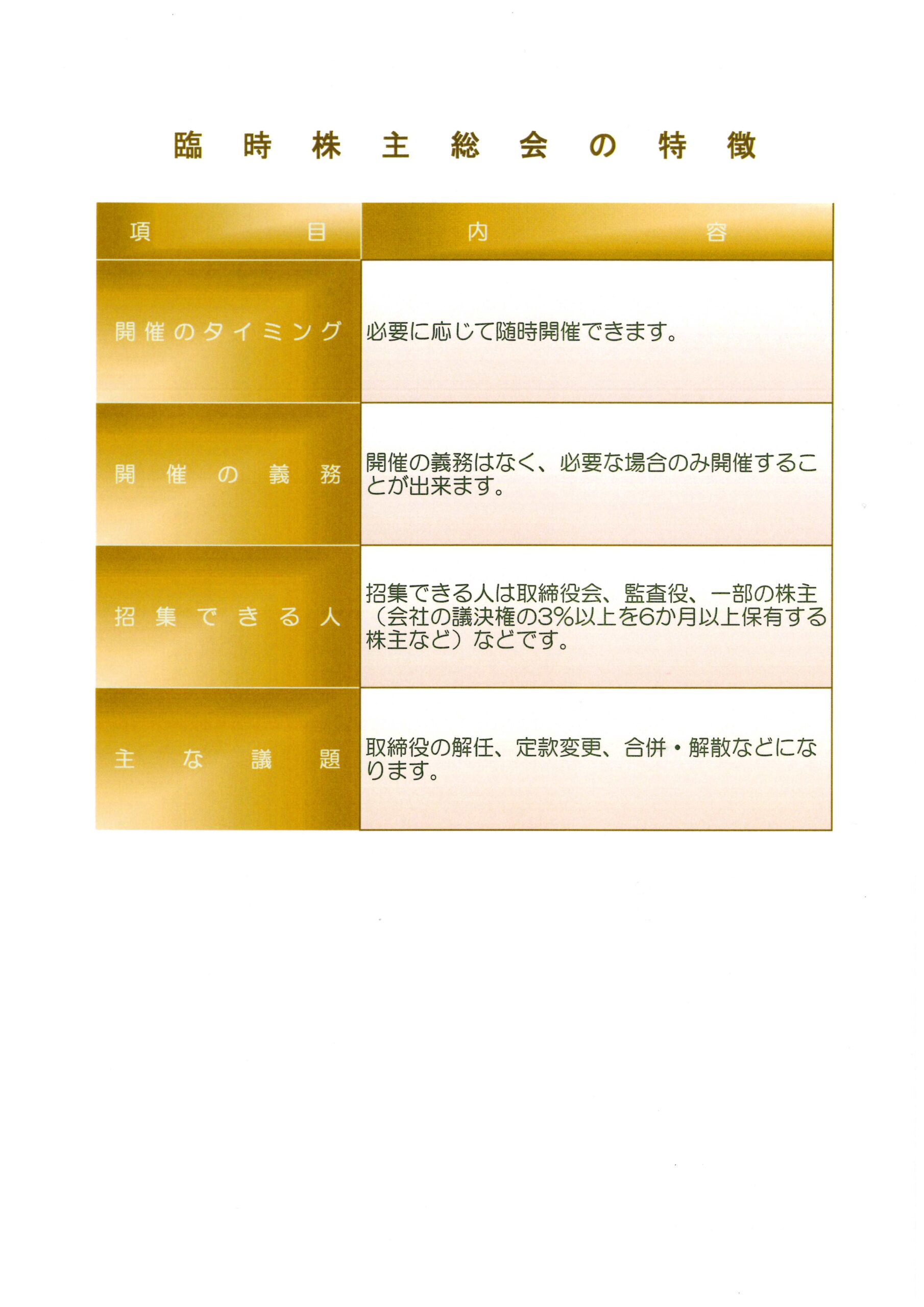 - ・臨時株主総会とは ~臨時株主総会で決められることって何でしょう?~